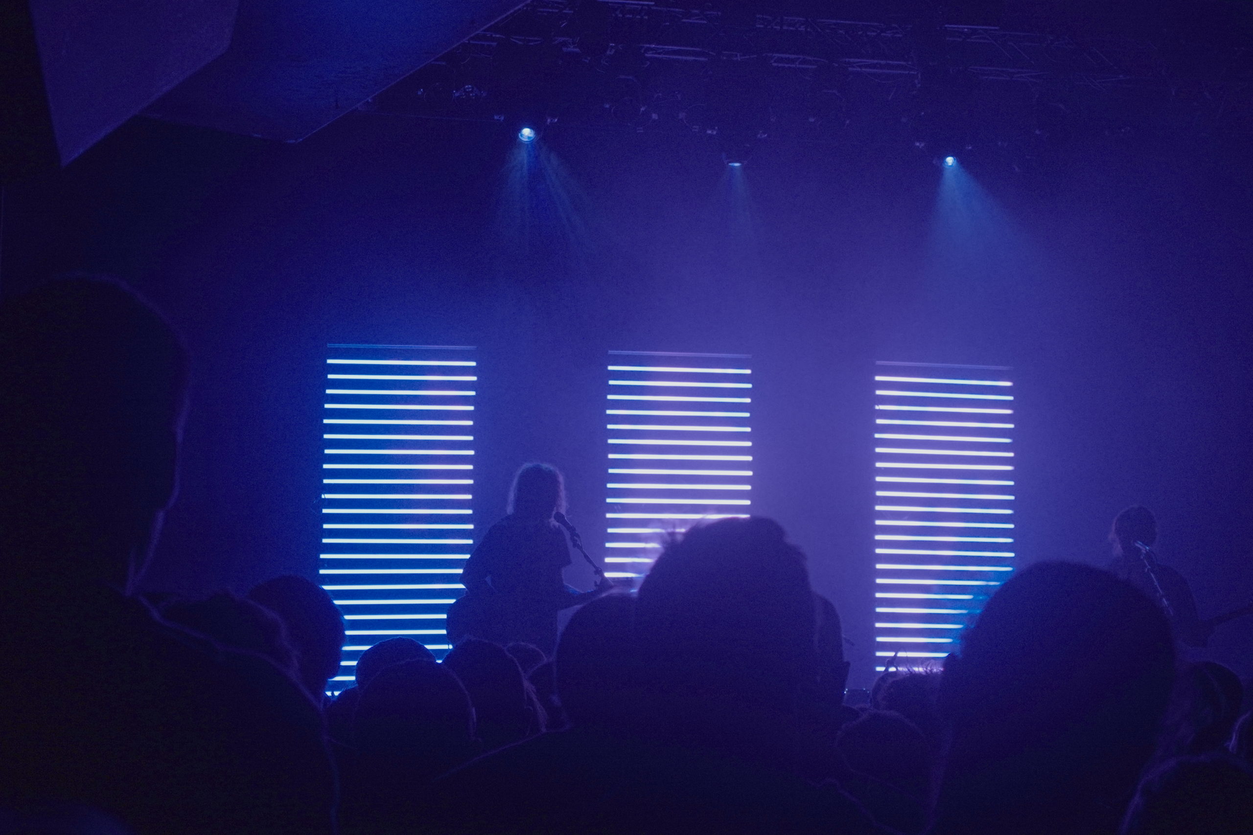 Sur scène, aucun chichi. L’éclairage est assuré par trois colonnes de néon disposés à l’horizontal derrière les musiciens. L’ombre les submerge. D’un peu loin, on ne discerne pas les visages mais simplement des silhouettes. L’ambiance sombre et minimaliste colle parfaitement à la musique, de quoi donner l’impression que le chant étiré du couple, comme dans un mouvement ralenti, est de source inconnue. Mystère maintenu. C’est particulièrement marquant sur les passages vocaux de Mimi Parker, beaucoup plus rares que ceux de son mari, leader au chant. Ces moments sont d’une extrême poésie, puisque la voix trop souvent absente atteint des sommets dès lors qu’elle décide de se manifester. On tomberait presque à la renverse. Le jeu d’ombre et de lumière vocal devient alors tout aussi fascinant que celui plus évident de l’éclairage.
