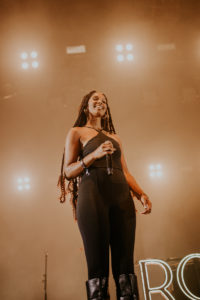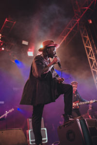 Black Pumas rentre alors sur scène.  Le chanteur du groupe est déchaîné. Il danse, chante et secoue la tête à en perdre chapeau et lunette de soleil. Le public réagit vigoureusement à cette musique chaleureuse et réconfortante.  Au-delà du chapiteau, des festivaliers profitent du spectacle assis dans l’herbe devant un coucher de soleil qui disparait peu à peu derrière les tribunes de l’hippodrome.