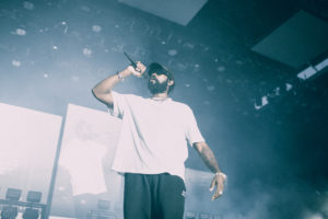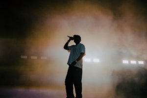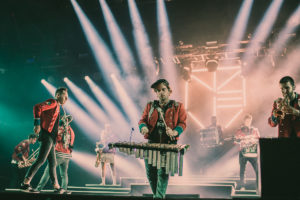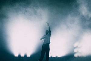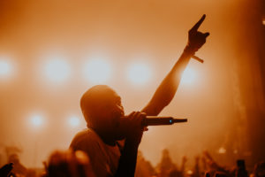 Les dernières notes de la musique Black Pumas laissent place au rappeur Damso, tête d’affiche de la soirée sur la grande scène de Paris. Il soigne son entrée à l’aide d’un compte à rebours qui excite le public, impatient de le voir surgir sur scène. Flammes et fumée ponctuent les morceaux de l’artiste. Dans la foule, le pogo est de mise. Sur le versant d’en face, la fameuse fanfare allemande Meute monte sur scène sous les cris des festivaliers. Le son des cuivres et de la caisse retentisse. La foule saute, danse et exprime sa joie. Le moment est singulier, propre aux fanfares, très différent de la musique de Damso entendu précédemment.