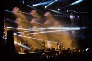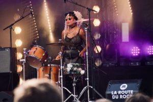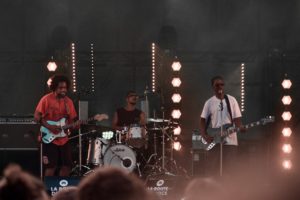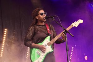 « We are black feminists punk » . C’est comme ça que BIG JOANIE se présente. Elles sont quatre sur scène, mais plutôt trois officiellement dans le groupe. Actives depuis 2018 et leur premier album Sistahs très apprécié, elles sont à l’origine d’un rock assurément engagé, fier et vivant. Quelques nouveaux morceaux sortis récemment précèdent un nouvel album à venir. De 18h30 à 19h15, elles ouvrent la soirée de la meilleure des manières, avec assurance et sourires. Jouer là semble les rendre heureuses. Le plaisir est partagé avec une foule qui, doucement, s’épaissit. Leur musique en jette. Sur le dernier morceau « Fall Asleep », l’ampleur est là. Les « yeah yeah yeah » du refrain retentissent avec fracas. La Route du Rock dans toute sa splendeur.