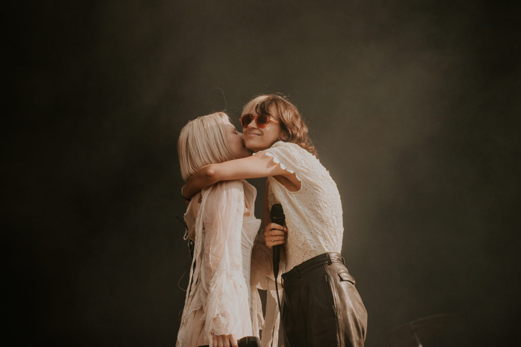 D’ailleurs, elle invite par surprise Pomme à la rejoindre sur scène pour chanter en duo l’un des plus beaux titres de son nouvel opus : « Everything Matters ». Comme sur la version album, les deux voix angéliques s’additionnent à la perfection face à un public plus qu’heureux de cette invitation. Quelque part dans la foule une jeune femme pousse d’ailleurs quelques petits cris en découvrant la présence de Pomme. Une accolade et voilà qu’Aurora récupère l’entièreté de la scène sur laquelle elle semble flotter. Au plus proche de son public, la chanteuse sautille à chaque fois qu’elle parle et pousse ses prouesses vocales sans sourciller. Elle ne manque pas d’interpréter son titre le plus connu « Runaway » face à un parterre d’adeptes qui reprennent le titre en chœur. Toujours au plus proche de ses convictions qu’elle défend avec ardeur (et à raison) sur scène, sur album comme lors de ses prises de paroles, Aurora agite un drapeau LGBT+ (ou plus précisément un progress Pride Flag). L’amour sous toute ses formes, c’est bien de ça dont il s’agit. Et elle sait on ne peut mieux lui donner corps et chœur.