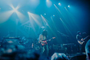 Le début du concert est tout de suite prenant, après une entrée sur scène chaleureusement applaudie. On se demandait à quel point ce genre d’artiste parvenait à fédérer autour de leur musique. Nul doute désormais sur le fait que Kurt Vile est très respecté dans le milieu et compte de nombreux fans aguerris. « Palace of OKV Reverse », morceau de son dernier album, se charge d’introduire le set. Tout est déjà en place. Il y a dans cette chanson un sublime parfum onirique, grâce à un riff dont seul le chanteur a la recette. Comme en apesanteur, quelque chose d’à la fois lent, doux et soutenu, « Palace of OKV Reverse » déploie déjà l’immense talent de son interprète. Kurt Vile envoute par sa voix et sa manière d’être en symbiose avec ses sons aériens. L’humeur est paisible, et loin de tout ennui.
