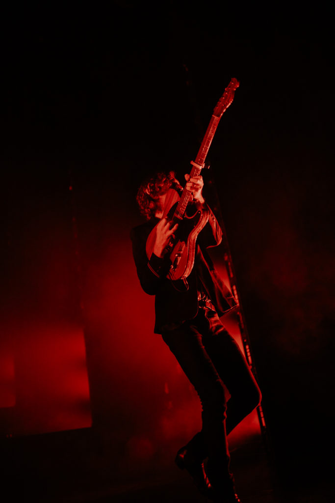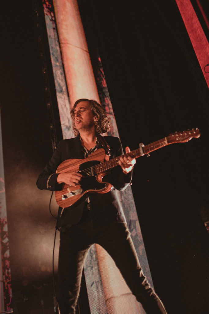 Le Phoenix compte bien renaître non pas de ses cendres mais de sa longue absence. Pour cela, point de temps à perdre, l’un de ses plus gros succès, « Lisztomania » est interprété en premier. Usuellement, les artistes réservent ce type de bangers pour la fin de leur set. L’alpha et l’omega auront ainsi leur place dès l’entrée en matière. Le banquet promet d’être copieux. « Entertainment » suit puis c’est au tour de « Lasso ». Mais c’est surtout le jeu d’écran qui s’attire toutes les attentions. Le travail réalisé est incroyable et offre un décors majestueux au périple musicale. Les images défilent et donnent l’impression que les musiciens volent dans les airs parmi les images. Pour rappeler sa ville d’origine, le groupe dévoile même des images de la galerie des glaces, pièce la plus iconique du château de Versailles. Les décors s’enchainent somptueusement et les couleurs pastels se suivent, les statuts y prennent vie,tout est incroyablement calculé. Pour autant pas question pour le groupe de Thomas Mars de se reposer sur ce dispositif pour séduire. La promesse est royale et doit être tenue de bout en bout. Aussi, ce dernier n’hésite pas à communiquer franchement avec le public, l’inviter à se donner mais aussi à lui-même prendre pleinement possession de l’espace scénique. Le son est dosé, les morceaux parfaitement interprétés.