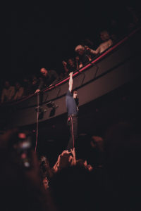 Un rappel vient apporter sa touche de réjouissances pour cette fin de soirée. « My Elixir » en guitare / voix résonne d’abord, doucement. Il faut le temps d’une dernière montée en puissance. Et puis « Artefact ». Finalement Thomas n’irait-il pas au plus prêt du soleil, saluer les balcons avant de tirer sa révérence ? Le voilà qui grimpe sur les balcons, en fait le tour, puis descend sur la foule, marche sur elle, micro à la main. L’occasion de se déchaîner une dernière fois ensemble, de rendre à la fête ses grandioses lettres de noblesses. L’écran géant affiche désormais le logo de Phoenix et ses nombreuses couleurs face aux applaudissement fournis entendus par tous les habitants de France et de Navarre.