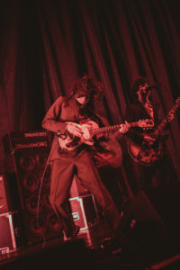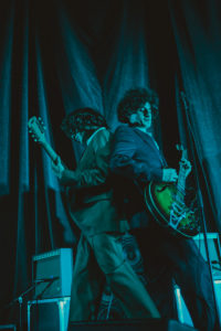 A Versailles, du temps de la royauté, l’anoblissement se faisait pas le sang. Ce sont donc des fils de qui viennent à ouvrir pour notre groupe vedette. Au sens littérale du terme puisque le duo qui débarque sur scène avec son décors minimaliste n’est autre que Sons of Raphael, venu ce soir présenter son projet pour une dernière fois en première partie de nos oiseaux légendaires. La moindre des choses que l’on peut dire est que la formation est un drôle d’oiseau et un objet qu’il faut apprendre à appréhender. Une longue introduction très indé vient titiller la curiosité et faire froncer les sourcils. Qu’est-ce donc que cela ? La réponse n’est pas si aisée à trouver. Rock c’est certains mais aussi hors cadre, difficile à cerner. Sans décors mais avec une mise en scène calculé les 2 acolytes se disputent un micro, font sonner leurs guitares, semblent se bagarrer, poussent la voix puis invitent un vidéaste à venir les bousculer sur scène. Un temps très arty à ne pas laisser entre toutes les mains tant la proposition confine à l’abstrait.