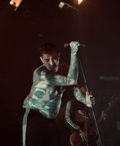 Fidèle à lui-même, le bide gonflé urgemment mis à nu comme si sa vie en dépendait, laissant apparaitre un corps entièrement tatoué, tantôt sublime tantôt repoussant, Sébastien Murphy, leader mythique du groupe, n’a pas donné tort à sa réputation ce soir-là. Il va de soi que si la musique de Viagra Boys résonne autant aujourd’hui, c’est en grande partie grâce à ce mec complètement barré. Tout chez lui respire de travers, de sa dégaine à sa démarche. Cette punk attitude, que l’on sent ici vécue de la plus honnête des manières, rend les concerts de Viagra Boys souvent mémorables, comme leur précédent parisien à l’Elysée Montmartre de cette même année. C’est un rock bourrin qui est à l’œuvre, mais toujours intelligemment fait, avec une base d’influences diverses, dont le blues en maître.