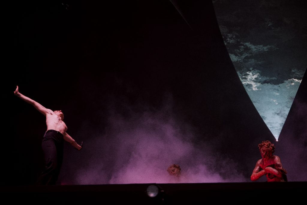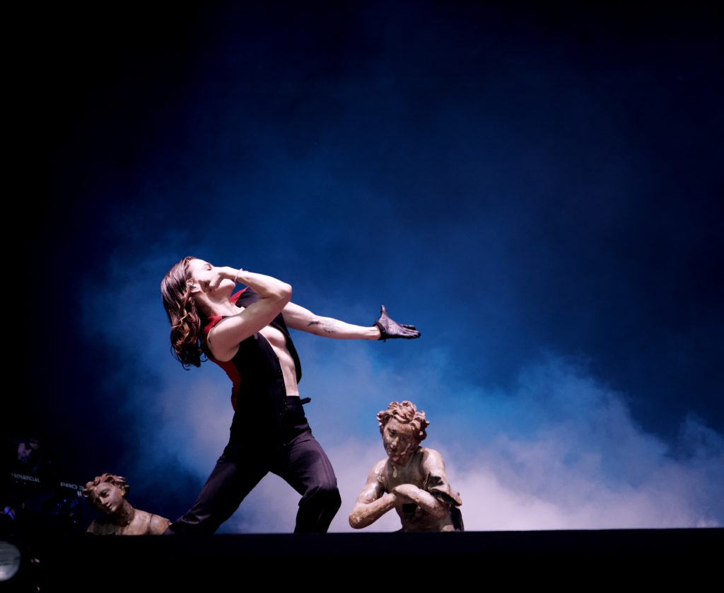 Les premiers instants ne trompent pas. Tout à partir de ce moment confère au grandiose, le musicien chante pour ses statuts s’adresse en particulier à la statut du lion  (un animal que l’on retrouvait aussi dans les paroles de « Saint-Claude »)  puis aux autres. Le moment est artistique, d’une excellence pointue, intellectuel mais surtout sensible. Christine and the Queens se joue des genres, enfile une longue jupe rouge, toujours le torse nu, court, virevolte, danse, exulte ses démons et personnifie la paranoïa. Tout est grandiose, jonché de couleurs rouges, comme un appel profond alors que voix et instruments frappent fort, les guitares se perdant dans des montées en puissance maîtrisées, elles aussi hors genres et registres. Le chanteur casse toutes les barrières, celles fixées par le format d’un live, d’un album, d’une industrie, d’une société qui aime les cases. Sous fond de lumières bleues obscures, il enfile ses ailes d’ange (déchu ou s’élevant dans les cieux?). Les frissons viennent à parcourir ceux qui hypnotisés reçoivent cette œuvre d’une sincérité troublante où l’image est aussi centrale que son vecteur : la musique. Il faudra vivre cette heure à bout de souffle, se laisser entraîner dans cette spirale où la douceur la dispute à l’intensité et enfin couronner roi ce renouveau de Christine and the Queens.