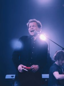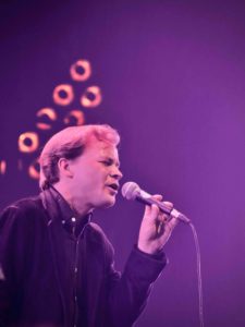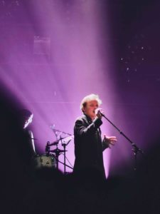 Geordie Greep est accompagné de cinq musiciens, à la guitare, à la basse, à la batterie, au violoncelle et au clavier. Une belle troupe pour faire vivre comme il se doit cet album monstre. La formation débute seule pendant dix minutes au moins, se lançant dans une sorte d’improvisation en mode jam session. Rien à voir avec l’album. Ca groove et ça commence bien. Geordie Greep se fait attendre. On se doute qu’à partir du moment où il entrera en scène, le changement de ton sera radical. Et finalement non, puisqu’en arrivant, il dessine quelques pas de danse avant de rejoindre à la guitare ses compères dans l’improvisation. Au bout de quelques minutes, il finit par dire « le morceau va s’arrêter dans 3 2 1… », puis, sans trêve, le concert bascule immédiatement dans le monde semi-horrifique de The New Sound, avec une mélodie plus serrée, une rythmique plus marquée, des musiciens tout de suite plus en tension. C’est le morceau « Walk On » qui ouvre le bal.