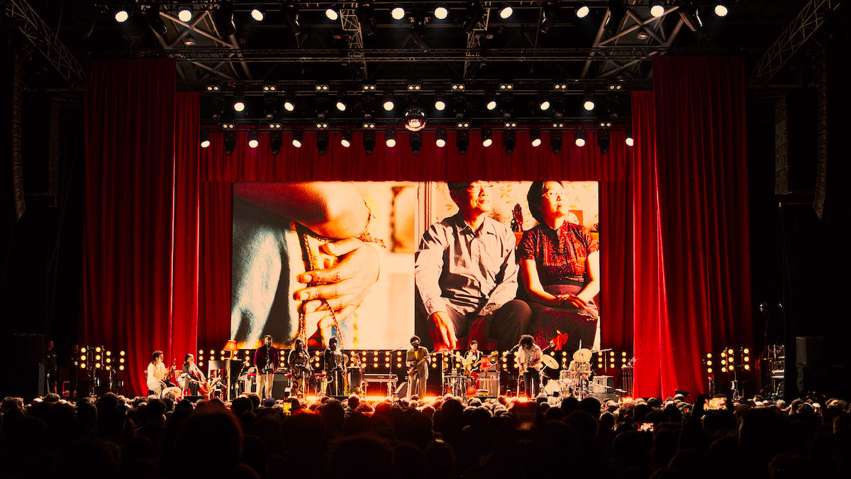 Un écran géant en arrière-scène vient ajouter une touche de beauté supplémentaire au moment. On y découvre des visages souriants, de tout âge, de toute origine. Des moments de beautés, de profonde plénitude. Un brin de fumée s’invite aussi à la soirée. Une brume de douceur. Nous sommes chez nous, dans un lieu où seule la bienveillance peut exister. La scène du Zénith est devenu le salon de Michael Kiwanuka. La musique en parcourt chaque recoin, elle vient masser nos cerveaux et nos coeurs. Debout, dans la fosse, le son nous permet de nous installer confortablement, se faisant fauteuil pour l’occasion. « Hero » ampli la salle. Le morceau issu de l’album « Kiwanuka » envahi les esprits. Les musiciens se complètent et forment un tout avec cette voix soul si puissante, leur précision est obsédante. Et puis finalement, comme notre instinct nous l’avait fait deviner, Kiwanuka parle de foyer avec l’un de ses plus grands succès « Home Again ». Hymne empli d’espoir, promesse d’un nouveau jour qui arrivera, de la force que nous retrouverons. Cette promesse vient percuter chaque spectateur ce soir qui chante avec lui. Les doutes s’envolent, si notre héros le dit, un jour on se sentira forts à nouveau. La set list défile à toute allure et le temps d’un premier au revoir pointe trop rapidement le bout de son nez. C’est un nouvel extrait de son dernier album qui vient à conclure ce premier acte : « Stay by my side ».