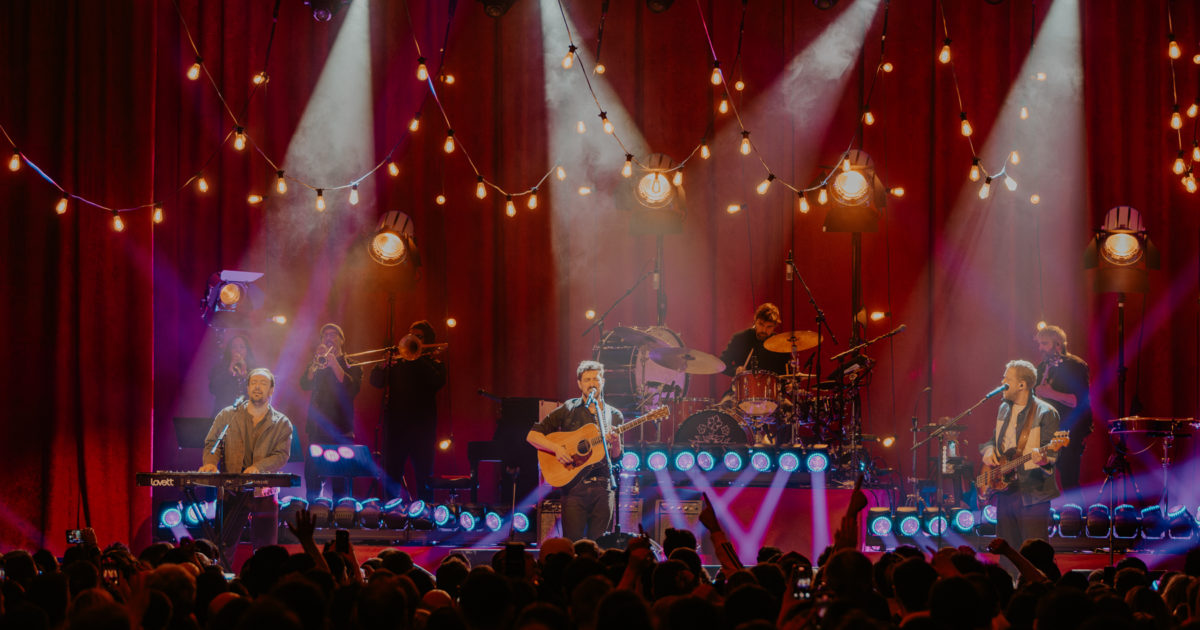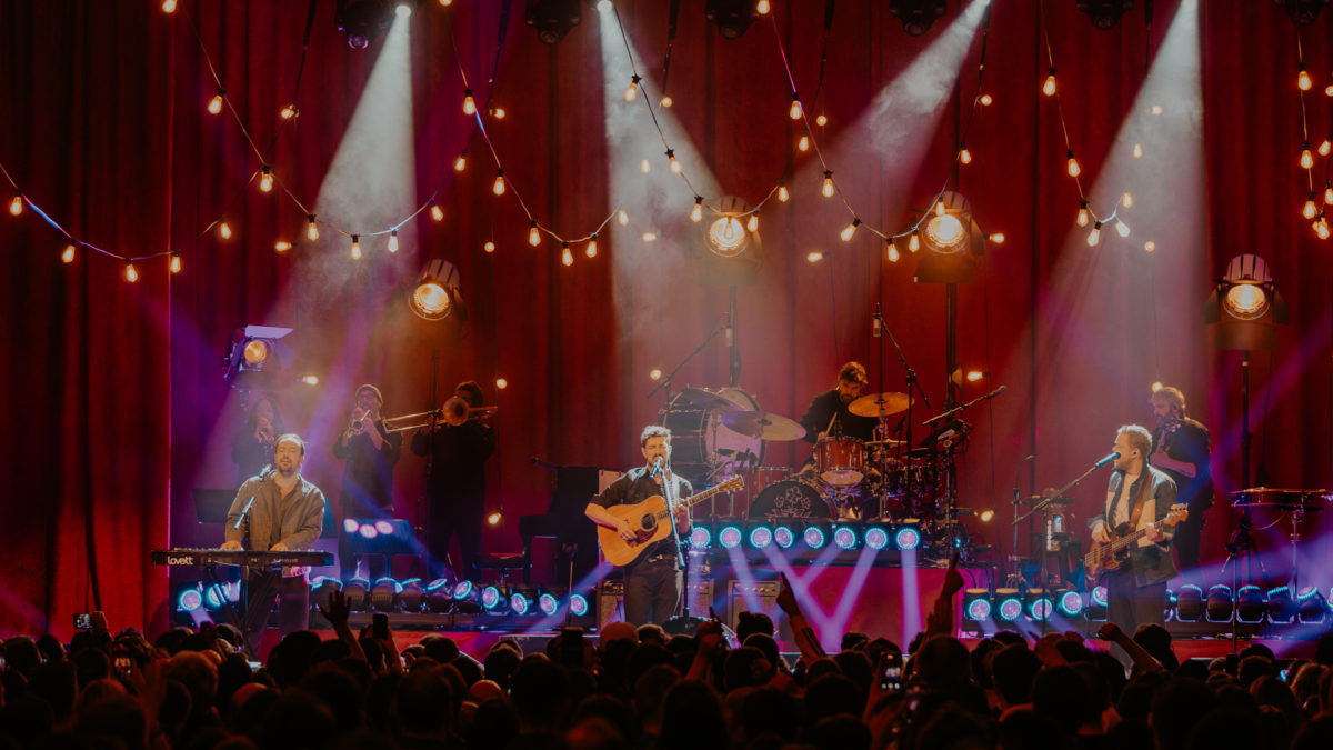 Mumford & Sons, la simple évocation de ce nom et voilà qu’une sensation de plénitude nous envahit. La folk rock particulièrement solaire du groupe a ce pouvoir magique de convoquer le bien-être et de le faire apparaître, le temps de quelques notes ou d’un simple morceau. Trop rare, la formation revient enfin en 2025 avec un nouvel opus « Rushmere » qui sortira le 28 mars. La promesse d’un temps à se conter des morceau autour d’un feu de camp, au moins par la pensée. Et ces belles histoires, le groupe avait choisi de les raconter à un public de lucky few, le 7 mars 2025, à l’Elysée Montmartre. Concert exclusif à coeur très humain. On vous emmène faire une pause. Soufflez, respirez, le show va commencer.