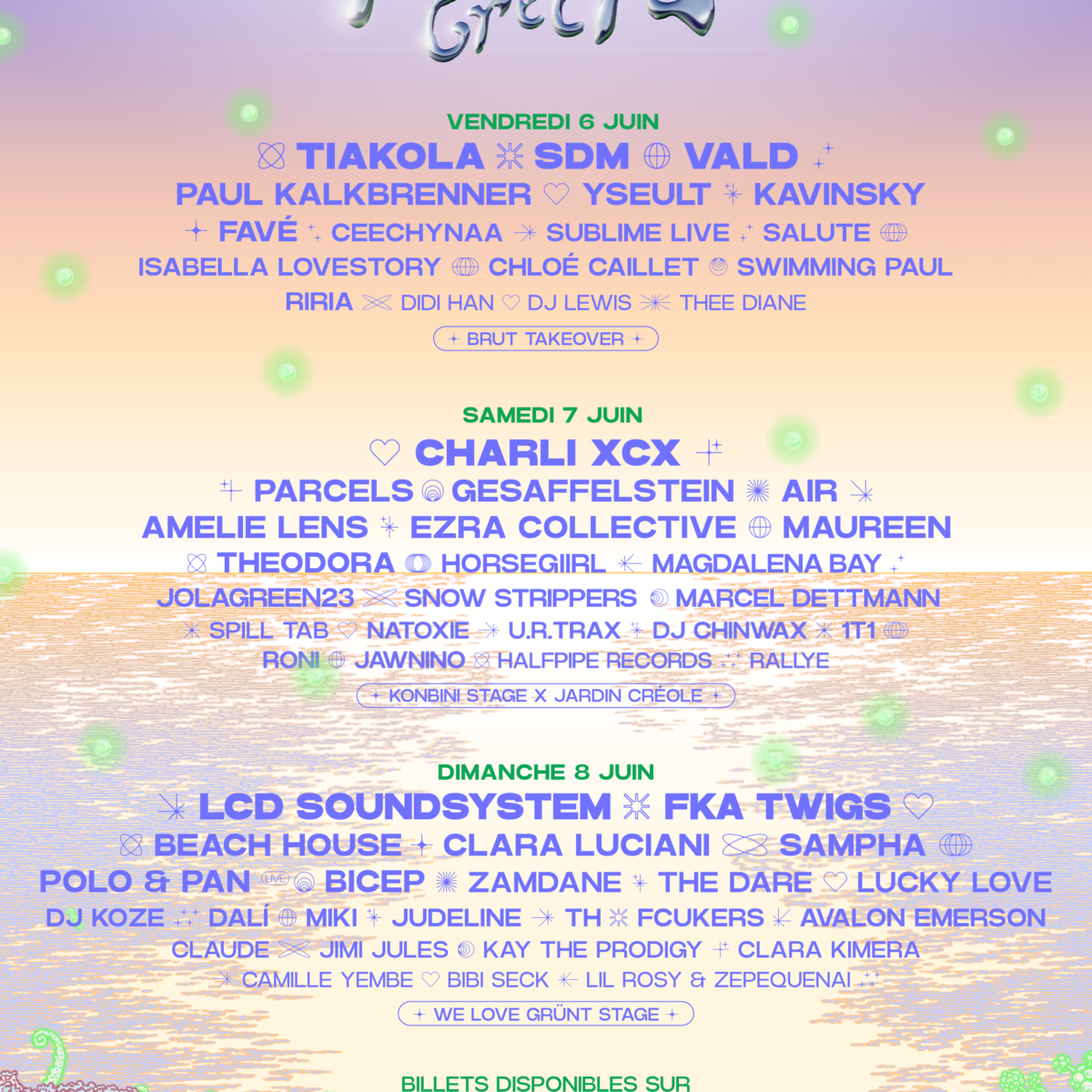 La journée du samedi elle, n’accueillera que des Number 1 ! Charli XCX ( on vous a dit qu’elle sera là le samedi déjà ?). Le BRAT Summer ne pose pas uniquement ses valises au Coachella cette année mais aussi à We Love Green et nous promet déjà le concert à ne pas manquer cette année. Elle permettra de toucher les étoiles là où Air promettent un passage sur la Lune avec leur culte « Moon Safari ».  Parcels fait également partie des têtes d’affiches. Et parmi les immanquables chouchous de la programmation on retrouve Horsegirl, Magdalena Bay et Ezra Collective.