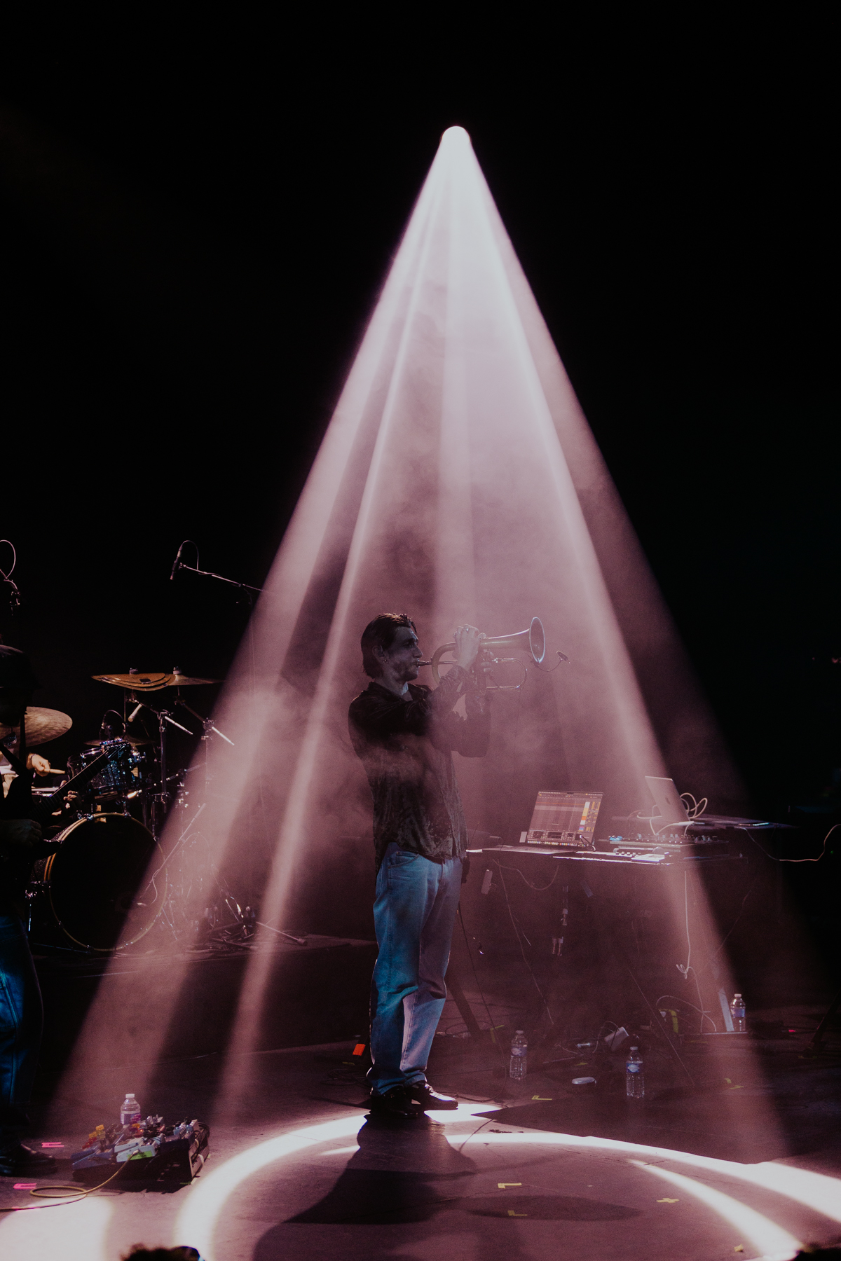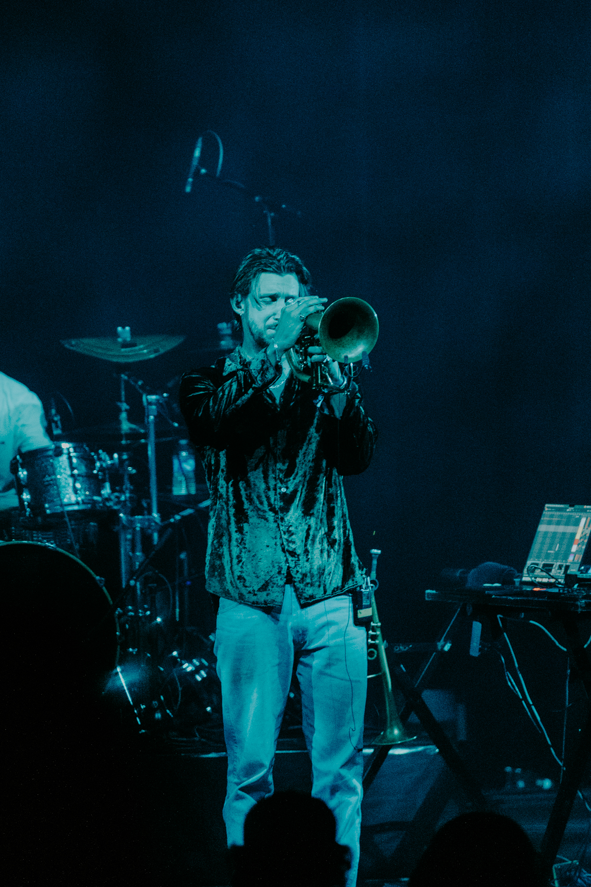 Loin d’être une découverte, on retrouve rapidement l’élégance de Béesau sur les planches de la Cigale. Evidemment, son style musical dénote avec le reste de la programmation. Tout comme un certain Sofiane Pamart, le musicien prend un instrument classique, la trompette ici et un registre plus difficile d’accès au grand public, le jazz donc, pour le faire l’adresser à tous.tes. Le jazz peut effrayer, sembler s’adresser à un public expert et pourtant, il regorge de merveilles à découvrir. Rémy Béesau, de son véritable nom, lui ajoute du Hip hop, un brin d’électro et créé un son à la production soignée. Logique pour un producteur ! Il publiait récemment deux ops « Coco Charnelle » ‘part 1 et part 2″ et son nouveau single laisse présager le meilleur pour le suite. « Pas encore », de son petit nom ne pourra pas être interprété ce soir. Prévu en fin de set, le concert avait duré trop longtemps aux yeux de la salle qui devait fermer. A défaut néanmoins de prendre la route pour ce nouveau voyage, c’est un concert sensoriel, empli d’émotions et de beautés d’écriture qui est offert ce soir. Vécu comme un bœuf entre musiciens, composé et interprété avec talent, le spectacle permettra peut-être à certain.es de faire leurs premier pas dans le registre.