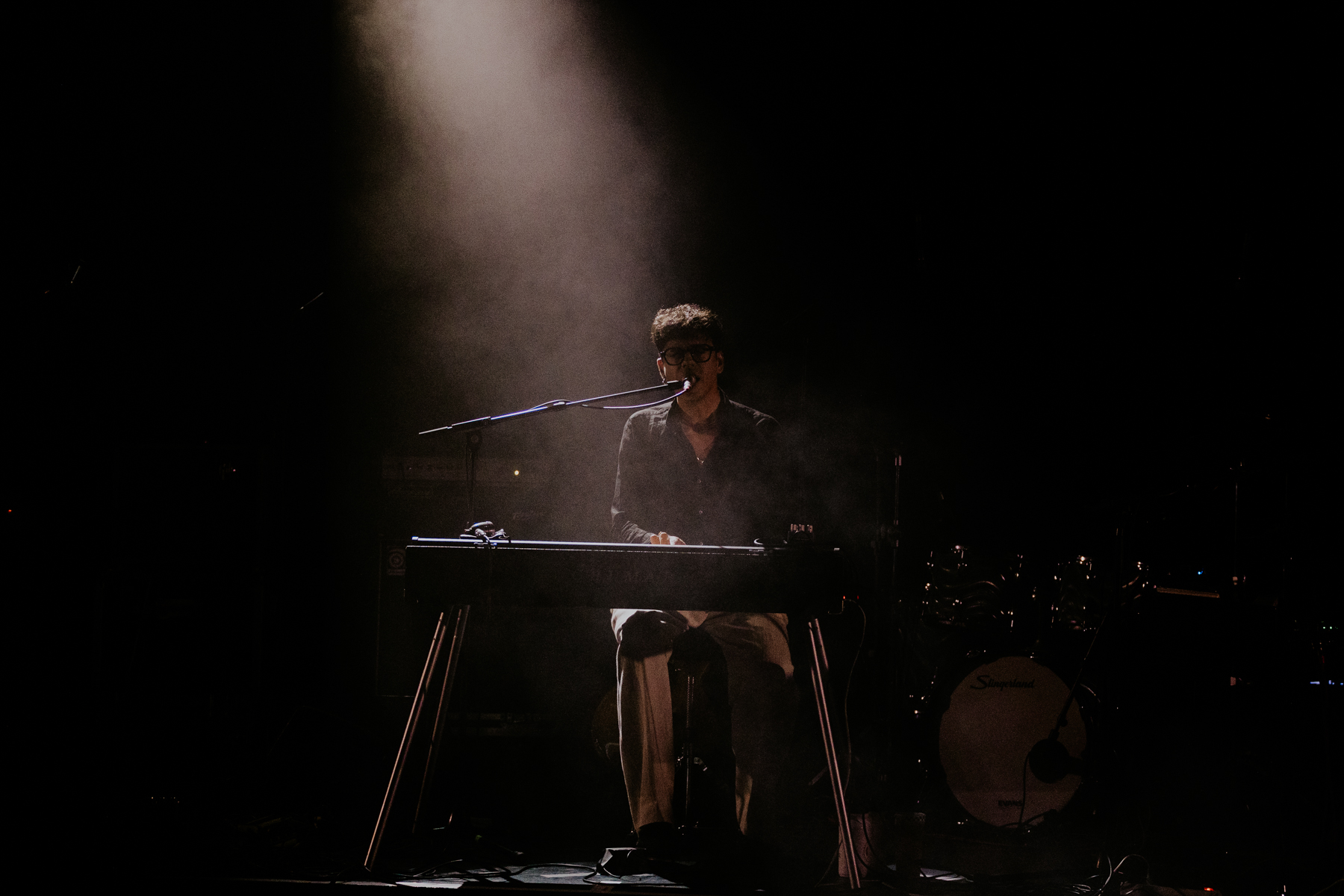 Nous parlions de bruits de couloirs, certains sont plus tenaces que d’autres. Celui qui concernait Dressed Like Boys a passé la soirée à nos côtés. Il était donc impossible de ne pas prendre le temps de découvrir le nouveau prodige de la pop made in Belgium. Et, il faut admettre à nos sources qu’elles avaient raison, puisque le spectacle donné en ce vendredi soir aux Trois Baudets était le plus beau de ce MaMA 2025. D’entrée, le ton est donné alors que notre homme officie derrière son piano avec la grâce d’un certain Elton John à ses débuts. Grandiose et captivant sans avoir besoin de surjouer, le musicien à le voix de velours attire autant les sympathies qu’il captive.