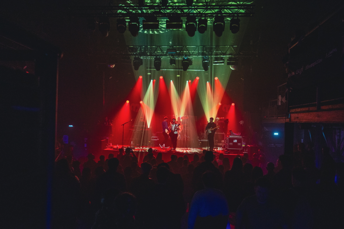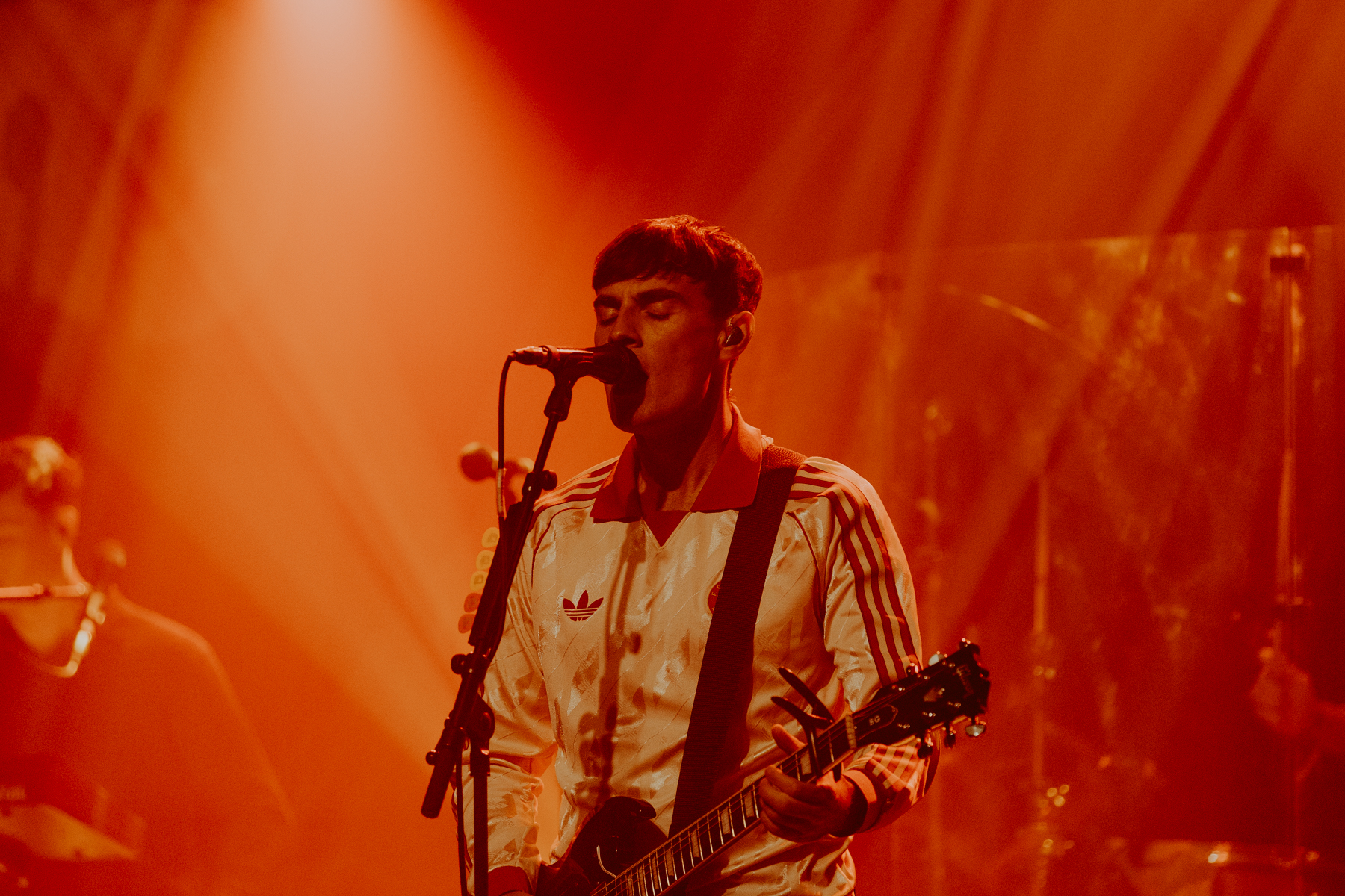Mine de rien ce dernier passe vite et voilà donc qu’il faut monter les escaliers, après quelques pas sur la marelle posée là, pour se prendre un bain de musique anglosaxone. The K’s vient en effet de débuter son set sur les planche de la Machine. Groupe rock originaire du Royaume-Unis, les quatuor est venu défendre son deuxième opus paru en juillet 2025. On découvre un rock, certes convenu, mais aussi facile d’accès. Solaire et plein de bon humeur, le groupe publiait son deuxième album » Pretty On The Internet » au mois de juillet. Un condensé de titres pêchus au rock qui lorgne sur la pop à la sauce Good Neighbours, très en vogue en ce moment. Sur scène, le set souffre d’une configuration statique qui manque à insuffler le tonus des compositions. Pour autant et malgré une salle encore relativement peu remplie, l’instant plaisant fait facilement croire qu’on aurait volé à l’été quelques beaux rayons de soleil pour les placer face à nous.