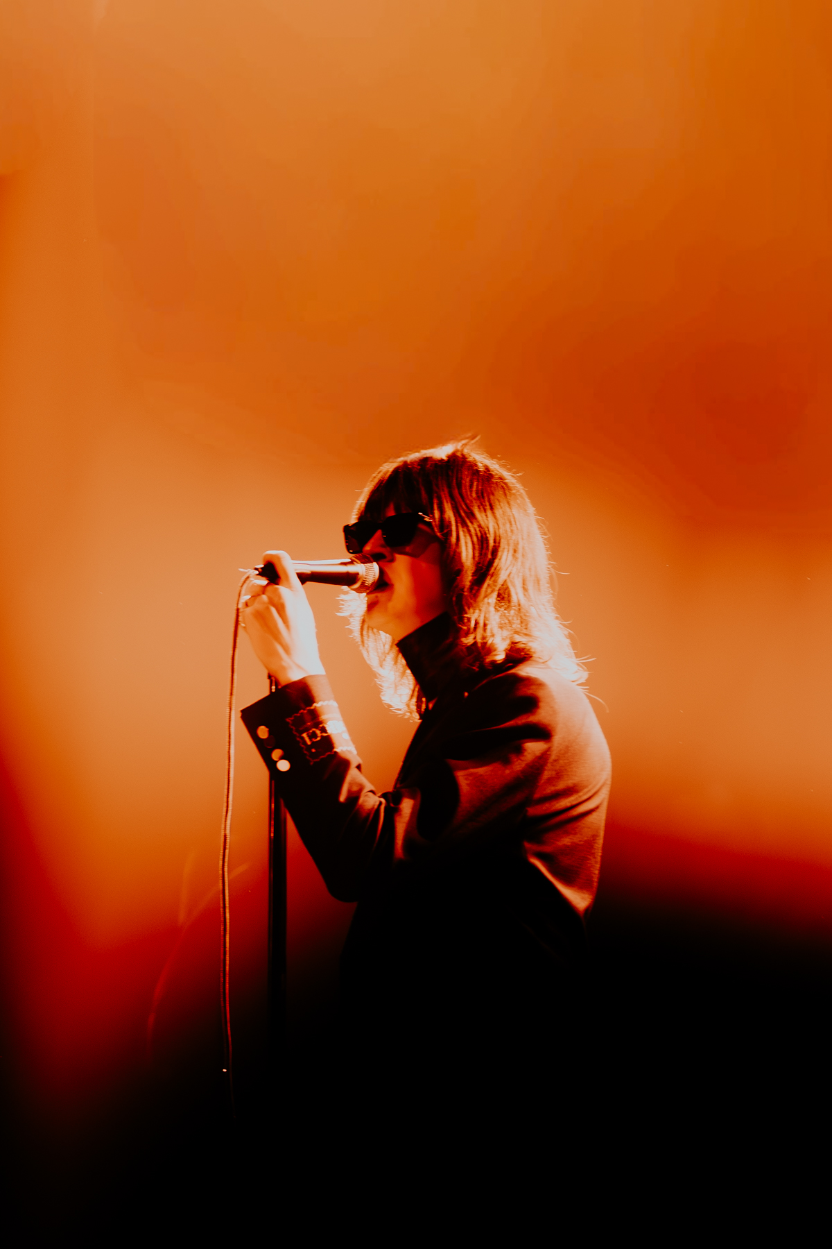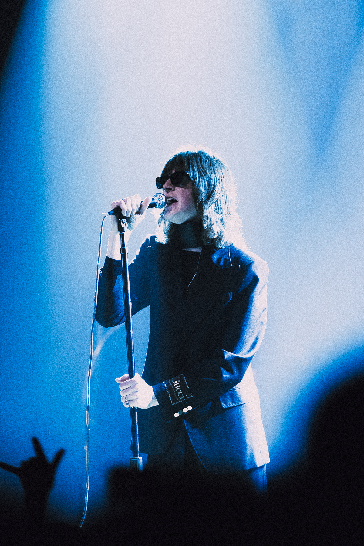 Les interactions sont finalement peu nombreuses, le groupe préférant laisser place à la musique. Quelques instructions viennent tout de même ponctuer ce date très réussi. Notamment celle de clapper fort pour permettre à une surprise d’arriver. Les surprises, idéales pour séduire, sont bien présentes. Le clavier et la guitare donnent le La aux pas de danse sensuels d’un meneur en crop top et aux lunettes de soleil greffées sur le nez. L’amour c’est aussi celui d’un groupe pour la scène de Manchester qui l’a biberonné. Ainsi, une courte reprise d’Oasis fait son entrée de façon impromptue dans la soirée. La chaleur est là, puissante et les lumière oranges rendent le moment d’autant plus plaisant. Alors dans la folie de ce joli rendez-vous quelques jeunes-femmes viennent se glisser sur les épaules de leurs compagnons.