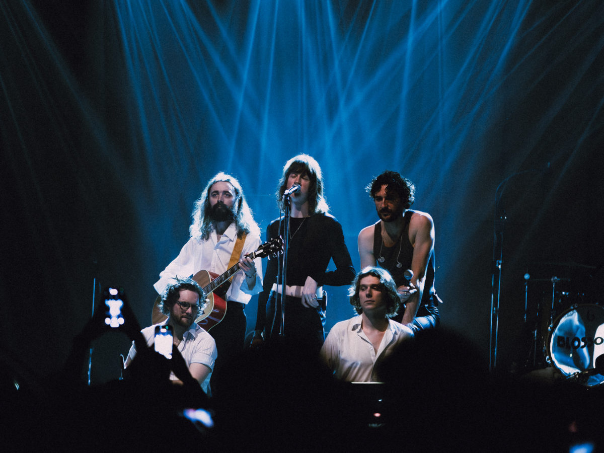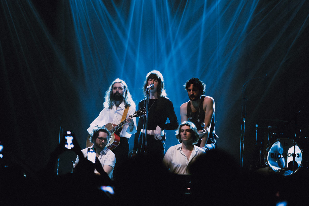 Le nom de la formation, Blossoms, lui vient d’un pub dans lequel le groupe avait pris ses quartiers. Cette particularité pour nos originaires du grand Manchester s’invite sur scène. Le début de la soirée ne joue pas la carte de la timidité, les titres s’enchaînent avec aisance comme les tournées de pintes au pub. « At most a kiss », « Gateway » suivent et s’enchaînent servis par quelques jolis mouvements de danse du frontman.