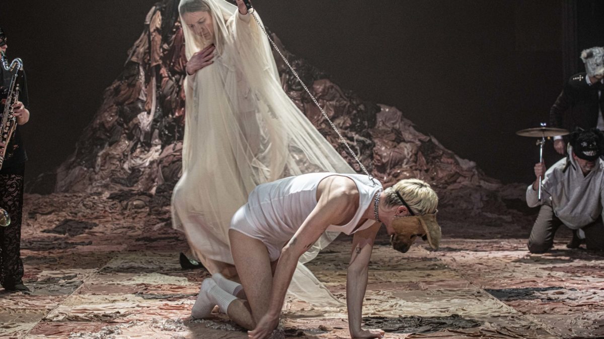Dans la lignée de La vie invisible, Un Sacre et Léviathan, la metteuse en scène Lorraine de Sagazan continue d’explorer les lacunes de nos sociétés et systèmes politiques contemporains dans des formes où le documentaire et la fiction se rencontrent. Créé en janvier 2026 au Bouffes du Nord, Chiens touche à la question de la pornographie en partant du procès à venir de l’affaire « French Bukkake ». Remontant à 2020, cette enquête met en cause le site du même nom pour « viol, proxénétisme et traite d’être-humains ». Le spectacle qui intègre deux cantates de Bach adaptées par Othman Louati prend une forme esthétique chiadée dans le but d’interroger « l’histoire de notre regard par le prisme de l’industrie pornographique ».
