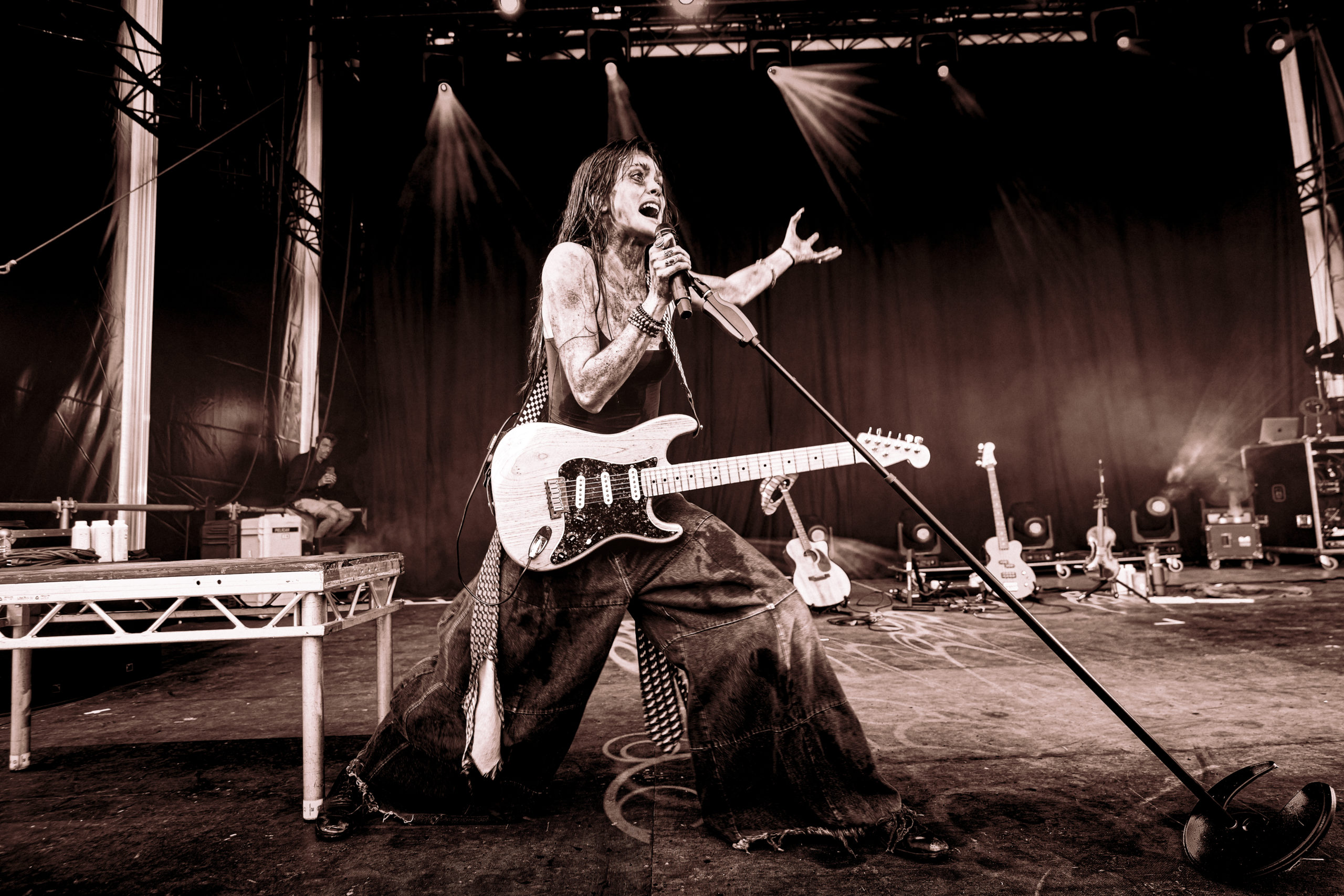 Nouvelle année, nouvelle scène. C’est donc sur la scène Horizon, la seule à tourner ce soir en dehors de la Grande Scène que l’on découvre la performance de Sofia Isella. Si premières scènes, la chanteuse s’est déjà fait une sacrée réputation via Tiktok. Un filon en or pour la découverte musicale, incontrôlable pour le milieu qui doit aujourd’hui compter dessus pour repérer ses talents. Couverte de boue, la musicienne féministe dévoile une vision artistique complète dès ses toutes premières notes sur le titre « Hot Gum ».
