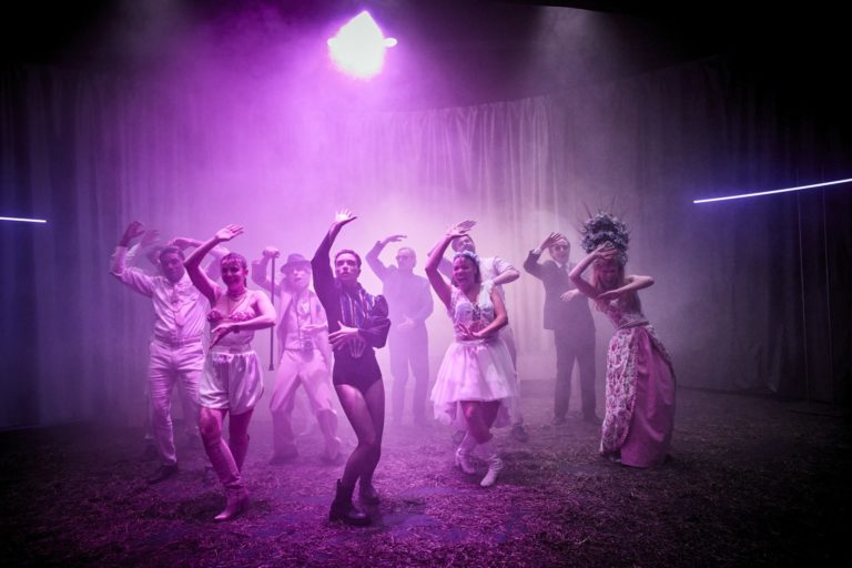 La joie du collectif et du texte shakespearien sont largement communicatifs dans cette mise en scène pleine de fougue. Cette scène de music-hall où Autolycus, sorte de voyou troubadour, devient une rockstar plus qu’un barde, a de quoi largement conquérir les esprits. La scénographie simple et efficace porte une proposition où chaque personnage trouve sa profondeur chez de jeunes comédien.ne.s doué.e.s. La fantasmagorie et le plaisir du théâtre sont de mises.