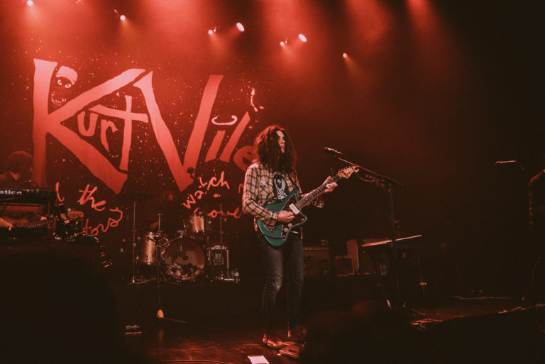 Le début du concert est tout de suite prenant, après une entrée sur scène chaleureusement applaudie. On se demandait à quel point ce genre d’artiste parvenait à fédérer autour de leur musique. Nul doute désormais sur le fait que Kurt Vile est très respecté dans le milieu et compte de nombreux fans aguerris. « Palace of OKV Reverse », morceau de son dernier album, se charge d’introduire le set. Tout est déjà en place. Il y a dans cette chanson un sublime parfum onirique, grâce à un riff dont seul le chanteur a la recette. Comme en apesanteur, quelque chose d’à la fois lent, doux et soutenu, « Palace of OKV Reverse » déploie déjà l’immense talent de son interprète. Kurt Vile envoute par sa voix et sa manière d’être en symbiose avec ses sons aériens. L’humeur est paisible, et loin de tout ennui.
