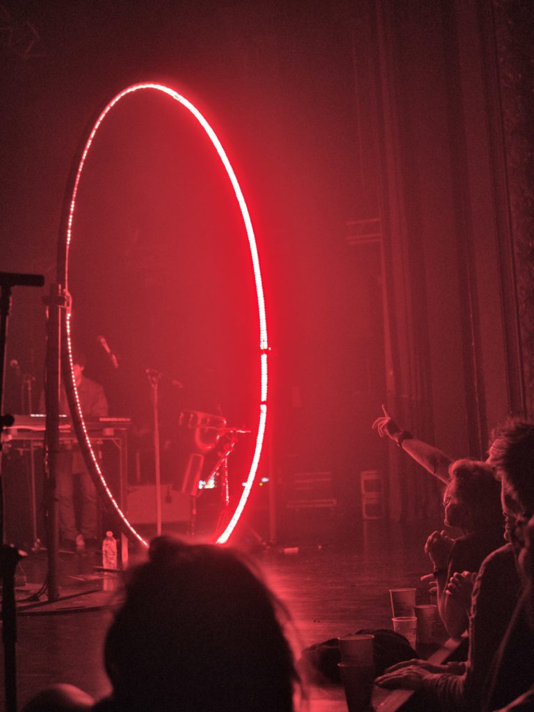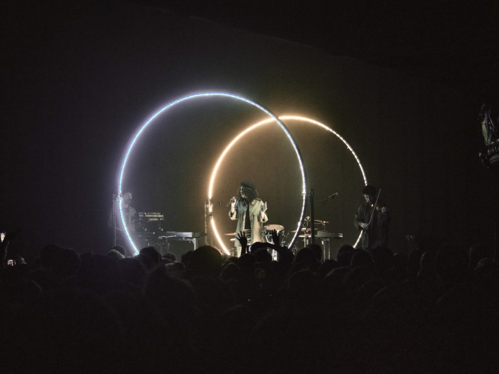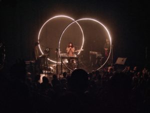 Ce qu’il y a de bien avec les jeunes groupes, c’est leur dévouement à la musique et à elle seule. Pas de place, de temps, d’envie, de moyens à accorder au spectacle scénique. Non. Celui-ci doit être au plus simple : sur l’écran tout en largeur de la scène de la Boule Noire flotte le visuel de leur nouvel album. C’est déjà plus que beaucoup de groupes. Mais niveau jeu de scène, les filles se concentrent exclusivement sur le rendu sonore. Pas de paroles en l’air, pas de mouvements inutiles. Non. Rien que la musique, soutenue par des présences incarnées évidemment. Sinon, on ne serait pas là. Mais cela suffit amplement pour rendre le moment subjuguant.