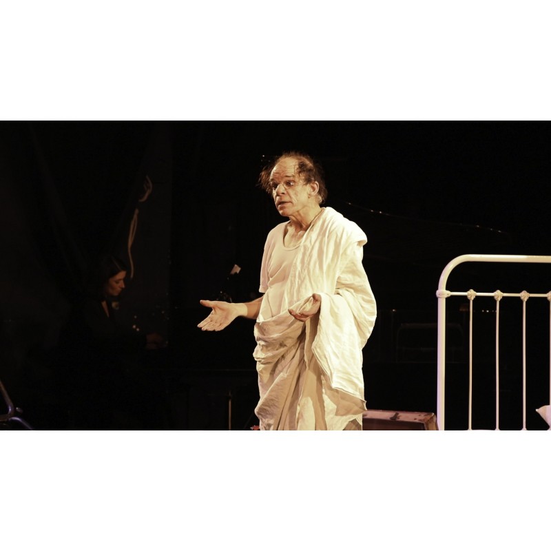 Le décor participe à cette émergence d’une recherche de joie et de vie. Il se construit au fur et à mesure, par l’acteur lui-même qui se charge de déballer devant nos yeux tous les rouages d’une mise en scène bien pensée. Denis Lavant se presse de revenir sur son passé, et l’urgence de la situation nous prend aux tripes. On le suit avec tout autant de peine que de joie dans sa tentative de libération. La pièce centrale qu’est le lit, l’endroit le plus intime de l’être humain, favorise le déroulement de ce récit personnel, grâce à une occupation de l’espace parfaitement maîtrisée : en bas, en haut, en longueur, en largeur… Le personnage aura été vu sous tous les points de vue possibles.